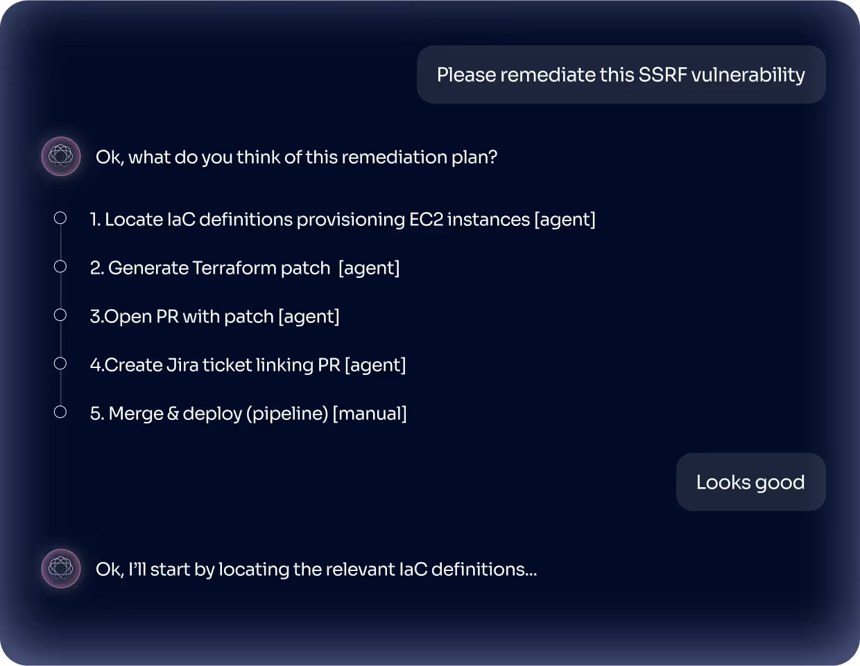 Instead of clicking across tools to remediate issues, let our Security Evaluation and Remediation Agent (Sera):